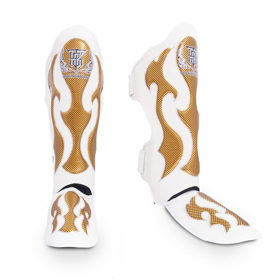 Top King Ochraniacze na Piszczele ze skóry naturalnej TKSGEM-01 Białe/Złote